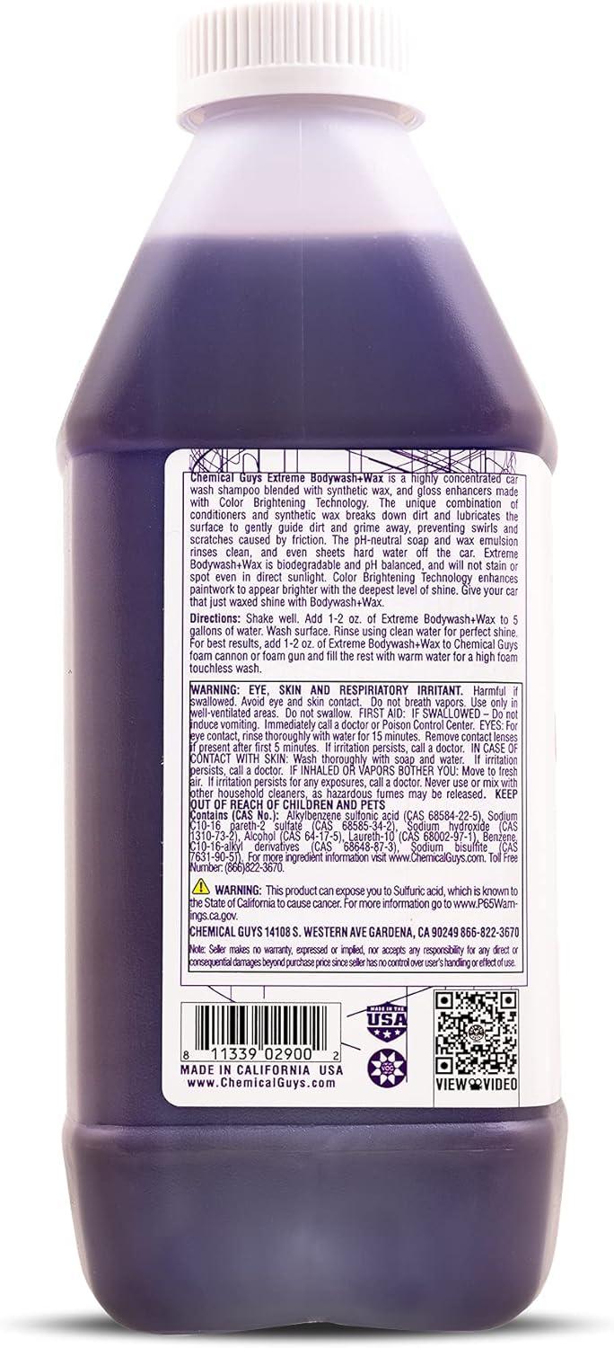 Chemical Guys CWS20764 Extreme Bodywash & Wax Foaming Car Wash Soap (For Foam Cannons, Guns or Bucket Washes) For Cars, Trucks, Motorcycles, RVs More, 64 fl oz (Half Gallon) Grape Scent(128 Fl Oz (Pack of 1))
