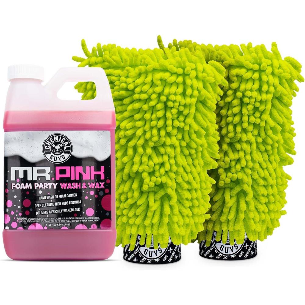 imageChemical Guys CWS22164 Mr Pink Foam Party Wash ampamp Wax 64 fl oz Tangerine Scent  Chenille Premium ScratchFree Microfiber Wash Mitt Lime Green 2 Pack 3 Items