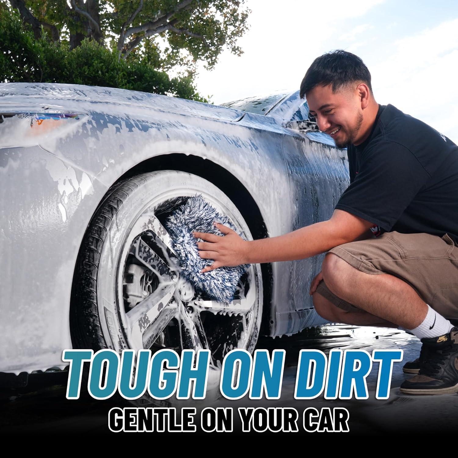 PLUSH MICROFIBER CLEANING: Thick microfiber fibers help lift and trap dirt away from exterior surfaces, providing effective cleaning while helping reduce friction during contact washing for safer results.