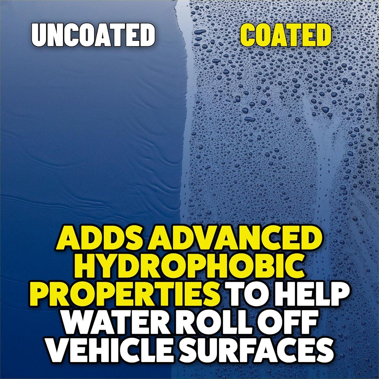 WATER REPELLENT PERFORMANCE: Creates a super slick surface that helps water bead and sheet quickly making wash and dry steps faster while reducing surface residue left behind after rinsing vehicles.