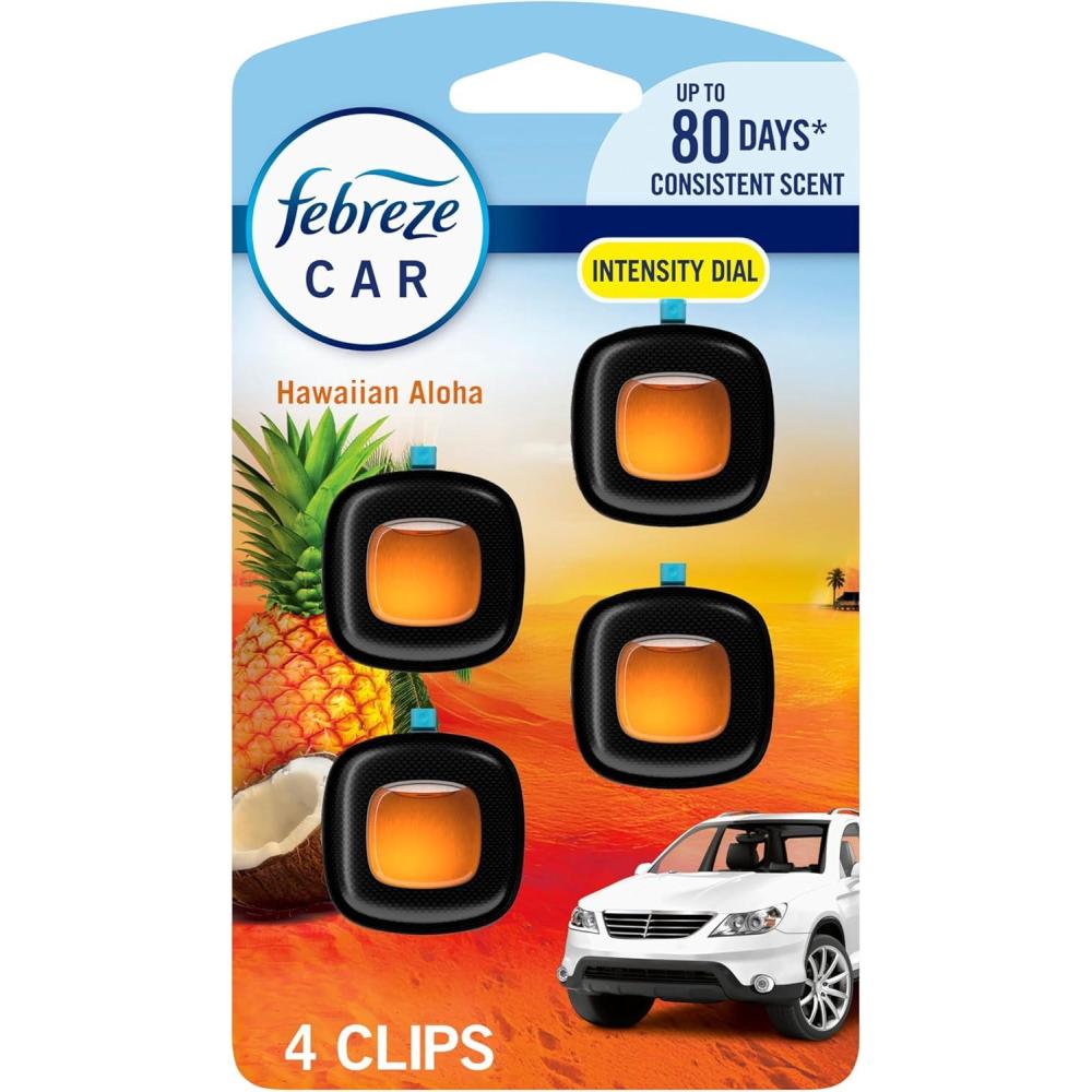Febreze Car Air Freshener, Odor-Fighting Automotive Vent Clip, Scented Car Accessories, Long Lasting for Strong Odors, Hawaiian Aloha Scent, 4 Count(Hawaiian Aloha)