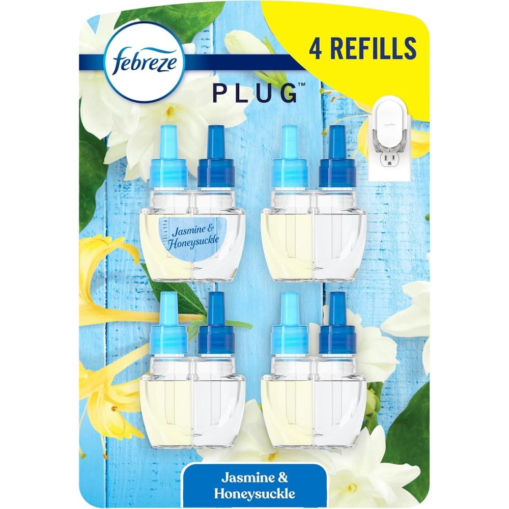 Febreze Plug In Air Freshener, Odor-Fighting Scented Oil Refill, Air Fresheners for Home and Bathroom and Kitchen, Long Lasting for Strong Odors, Mango Splash Scent, 0.87oz Refills, 4 Count(Jasmine & Honeysuckle)