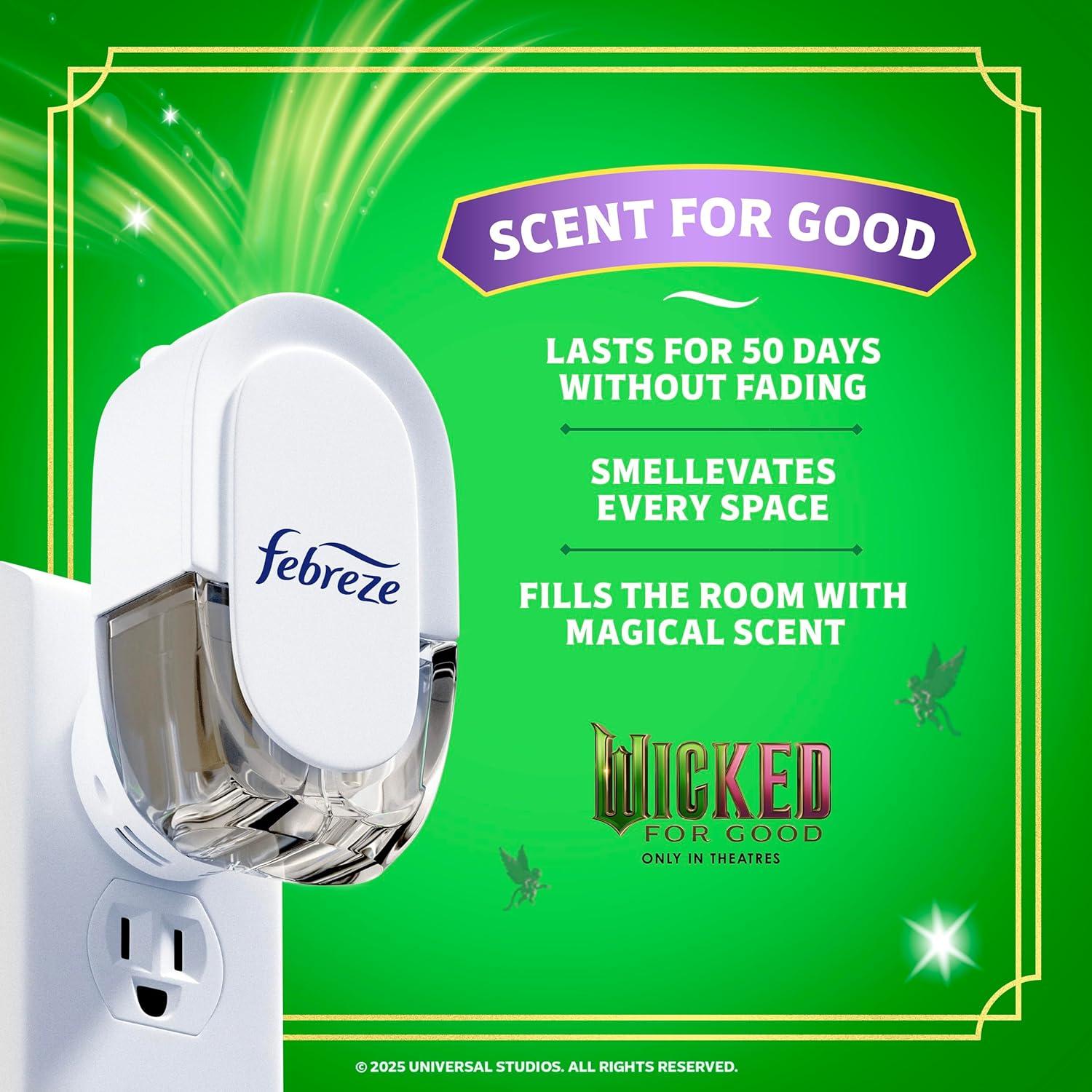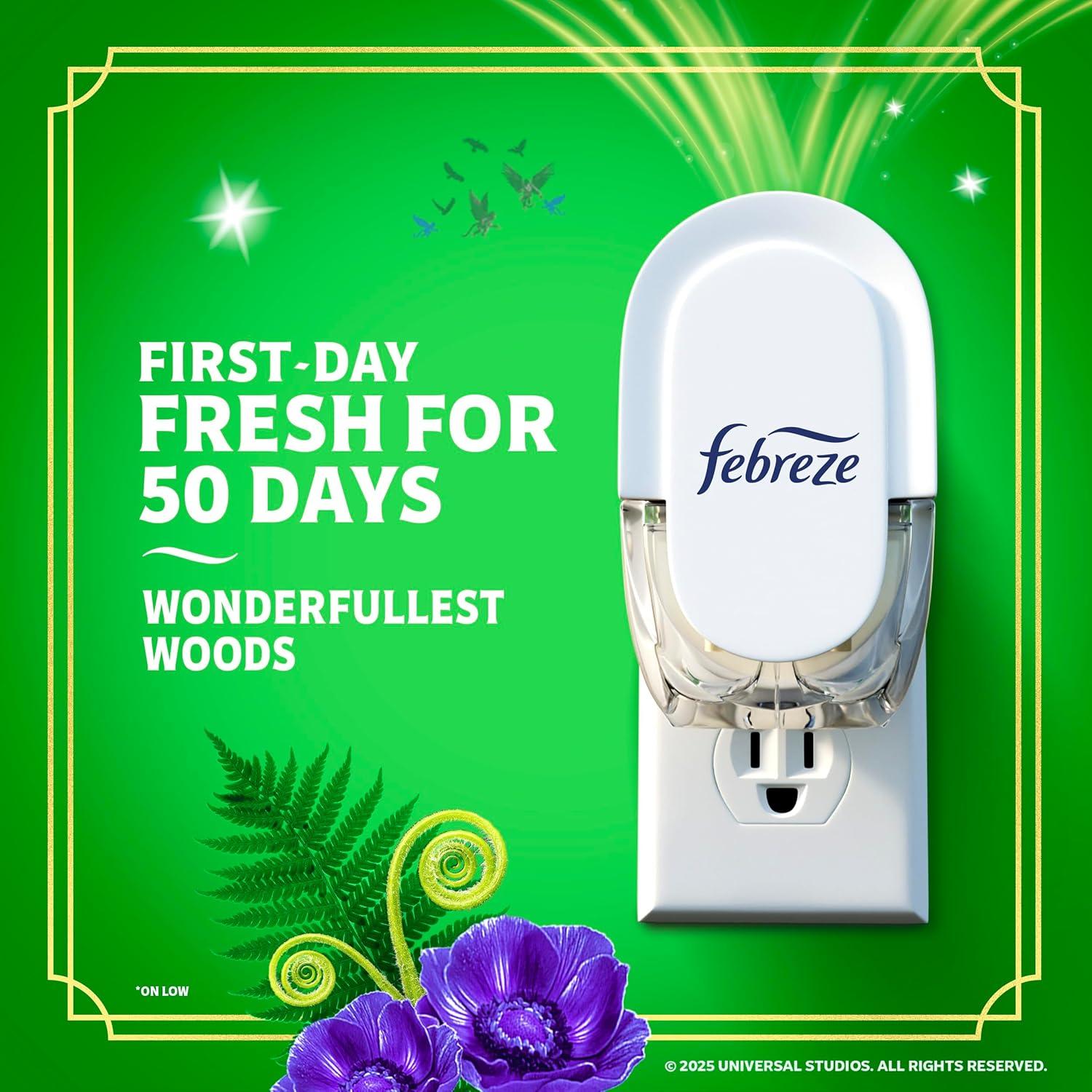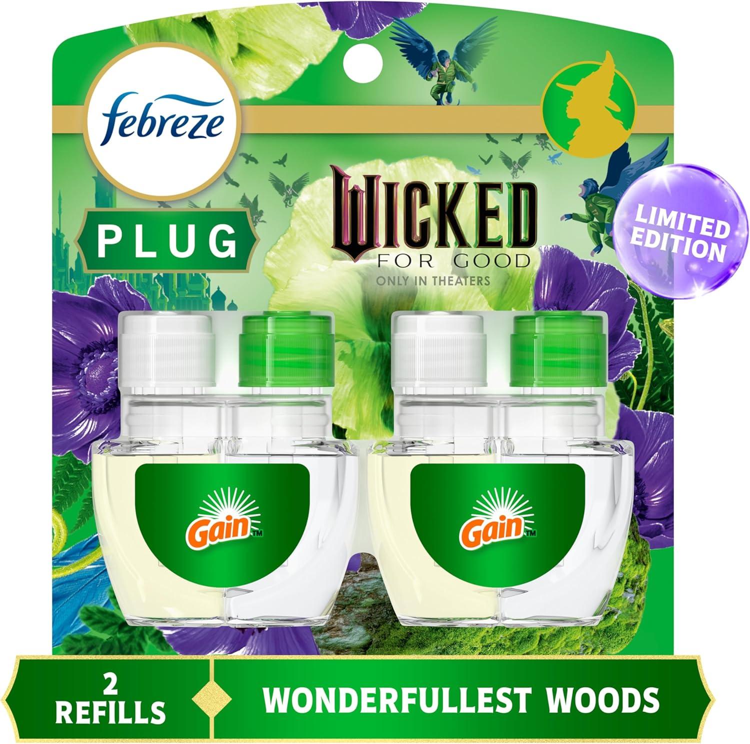 Febreze Plug In Air Freshener, "Wicked: For Good" Limited Edition Odor-Fighting Scented Oil Refill, Air Fresheners for Home and Bathroom and Kitchen, Long Lasting, Wonderfullest Woods, 2 Count(Wonderfullest Woods)